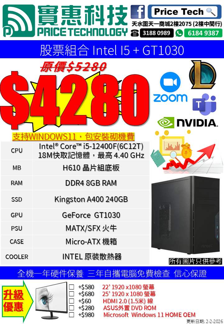 i5-12400F / GT1030 / 8GB / 240GB