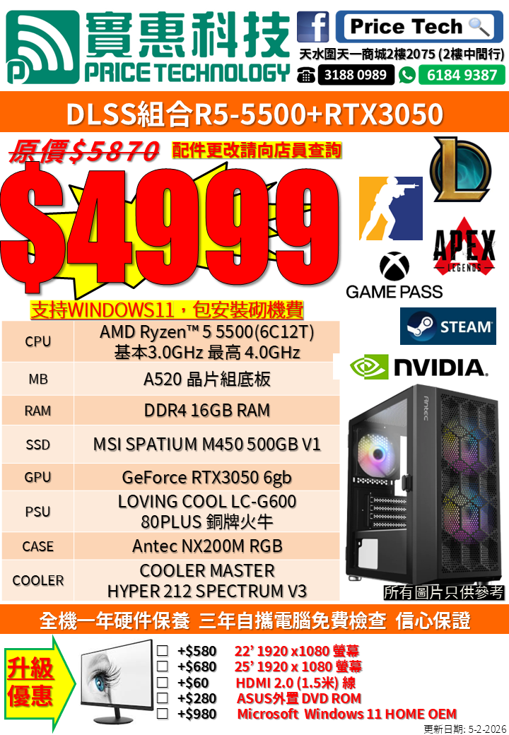 主頁 電腦砌機組合 3A扣門組合R5-5500+RX6400